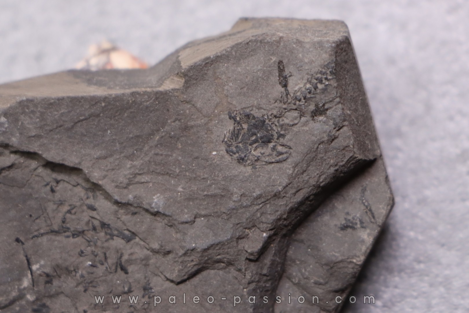 - le fossile est recouvert d'un verni protecteur..