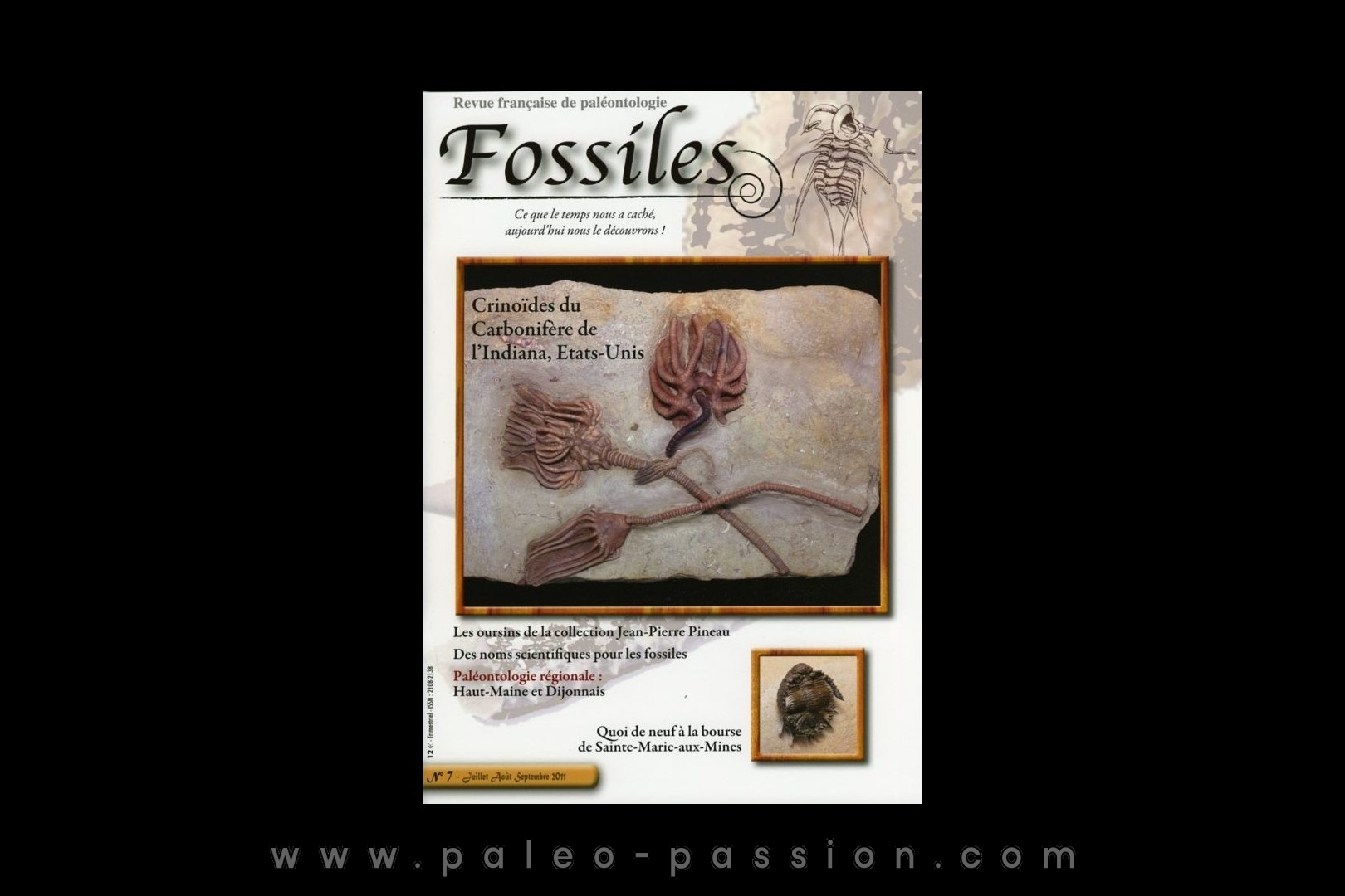 revue "FOSSILES" n° 7 (juillet aout septembre 2011) "La revue francaise de paléontologie" 68 pages photos couleur papier glacé format 21 par 30 - 429 photographies liste des articles: