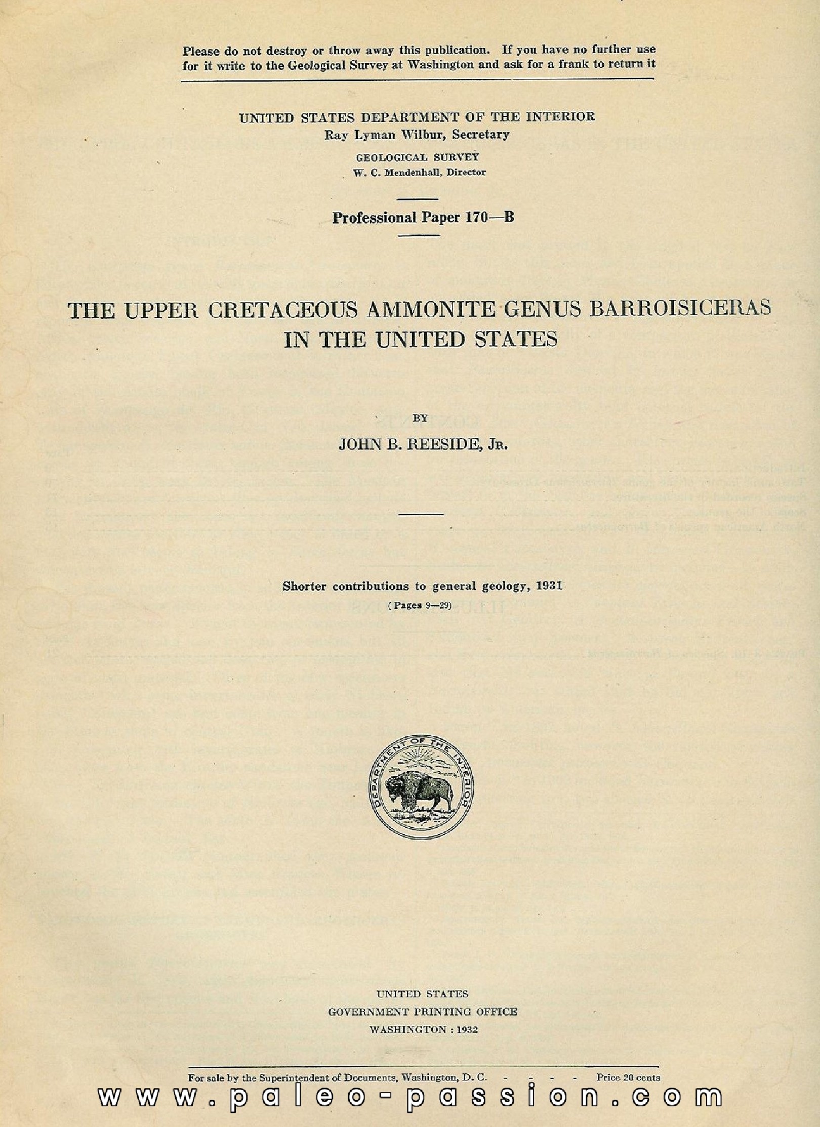 geological survey Washington - professional paper 170-B