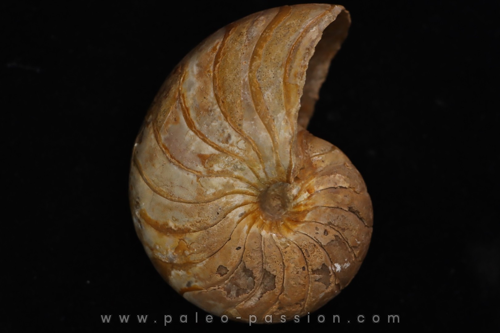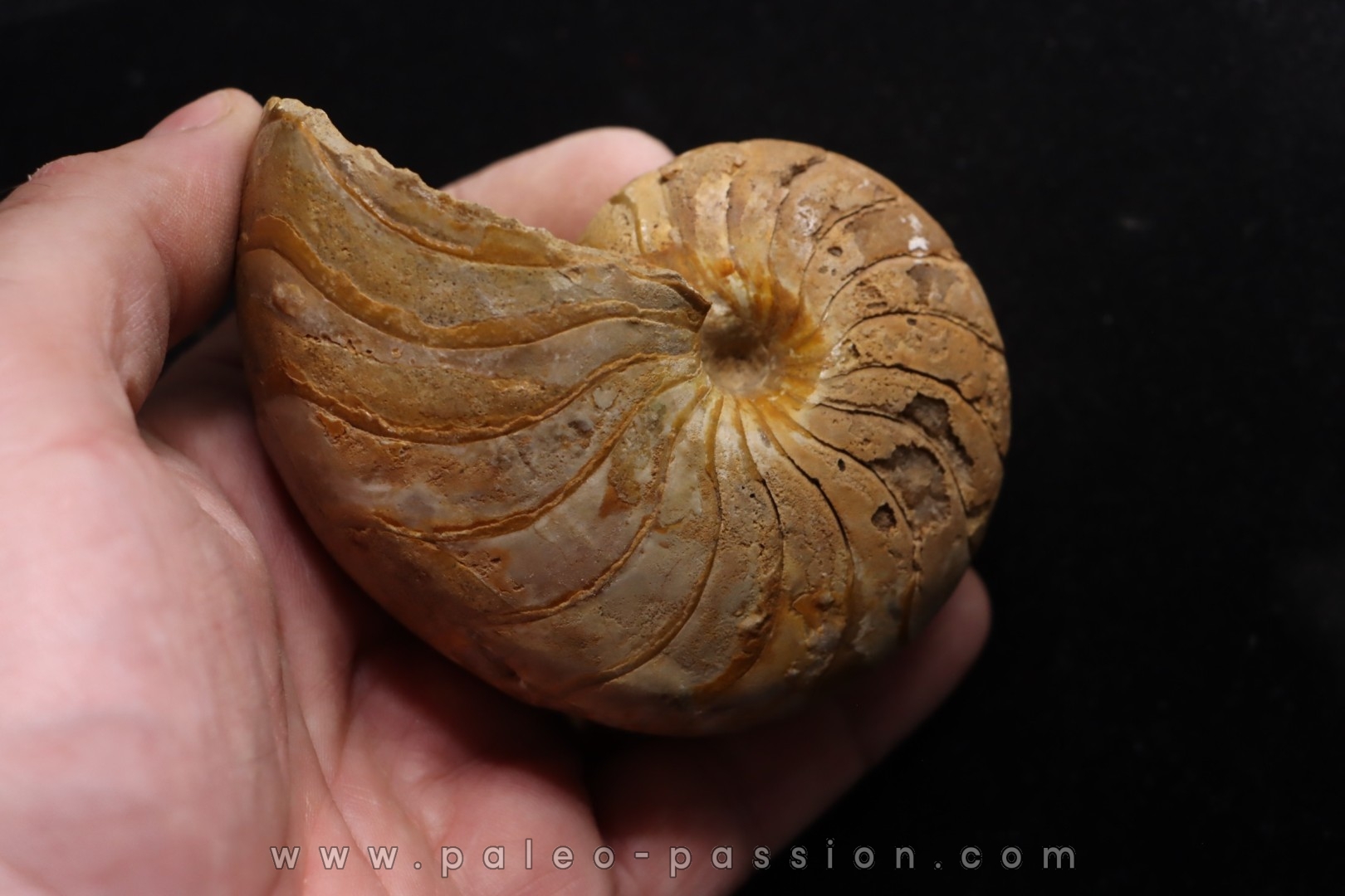 - specimen conservé avec de la coquille d'un coté, lignes de sutures bien visibles de l'autre..