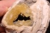 fossile CLAM avec geode de calcite miel : Mercenaria permagna - Pleistocene - Nashua Fmt - Okeechobee County, Florida, USA