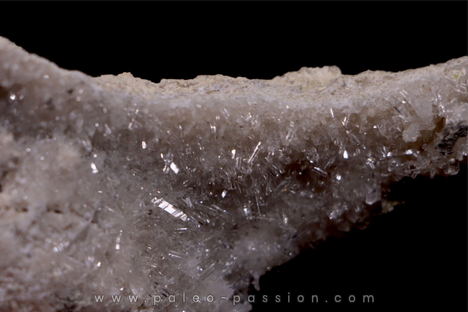 Le specimen est tapissé de petits cristaux brillants.