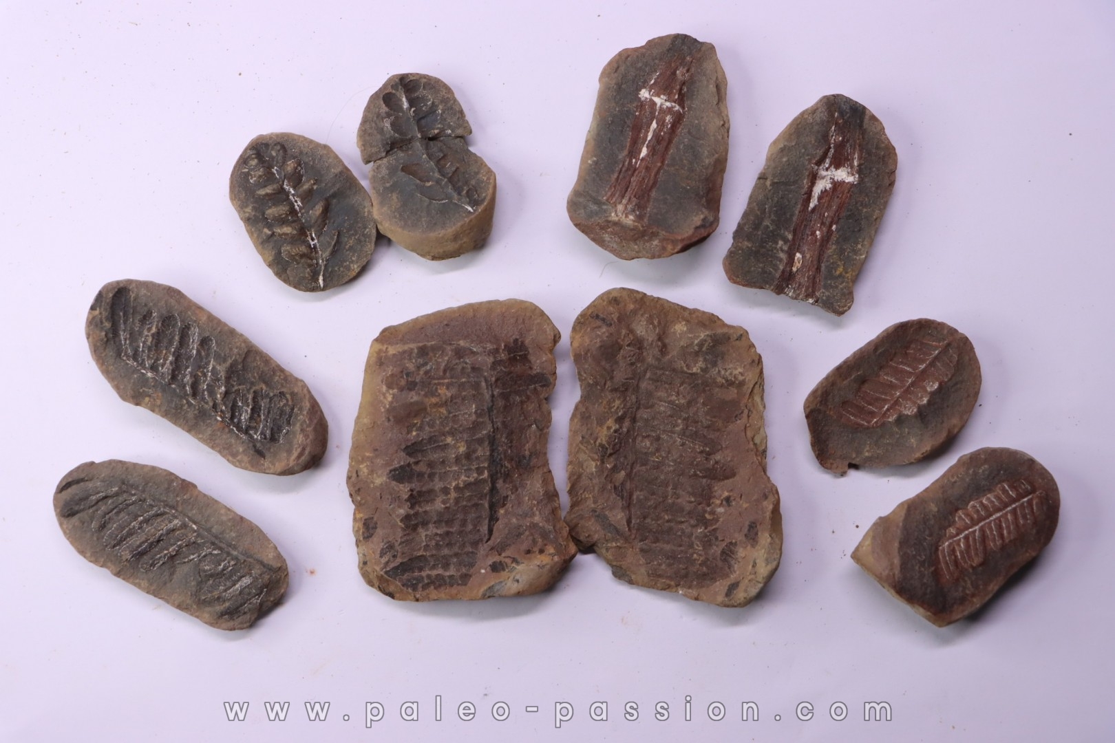 collection de 5 nodules de fougeres - pennsylvanian (carbonifère) - Carbondale Fmt - Mazon creek - Illinois - USA