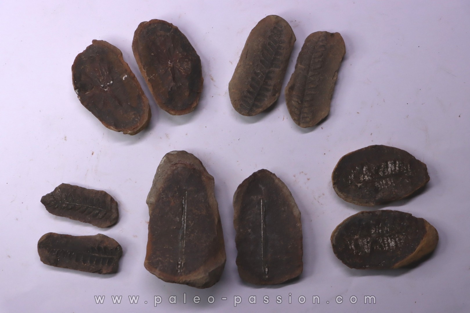 collection de 5 nodules de fougeres - pennsylvanian (carbonifère) - Carbondale Fmt - Mazon creek - Illinois - USA